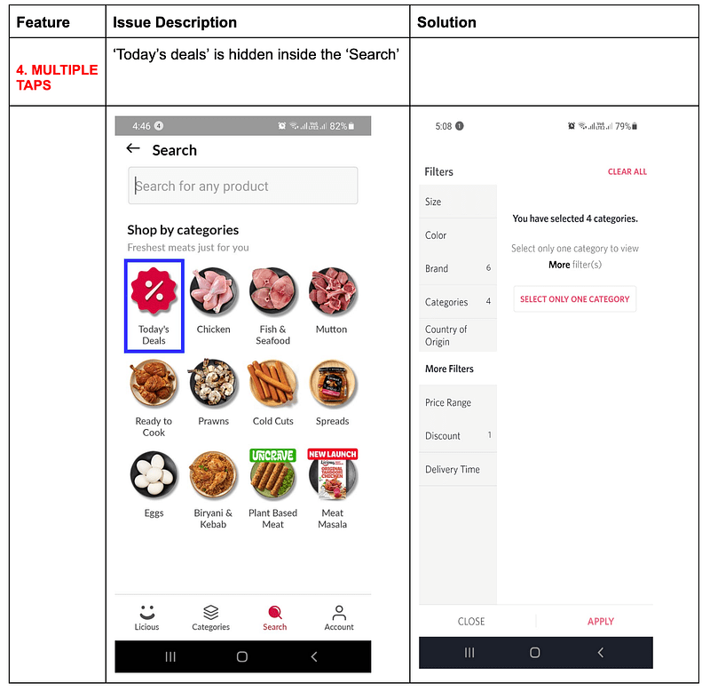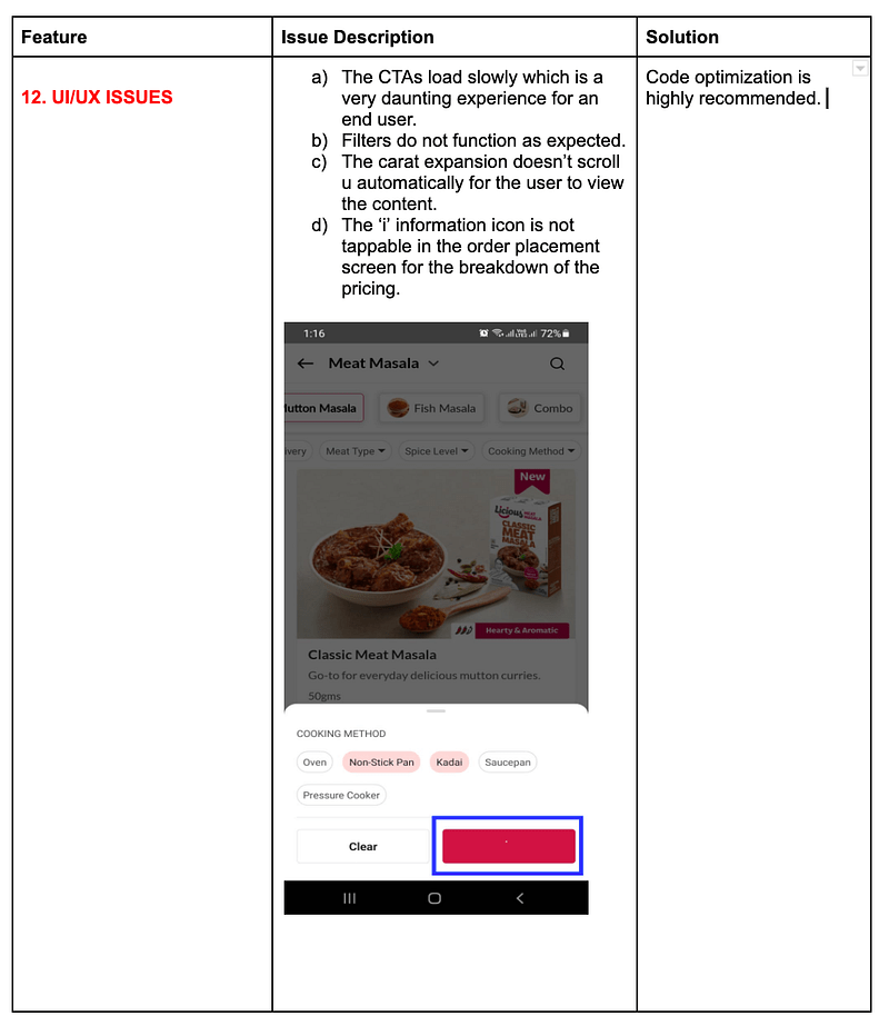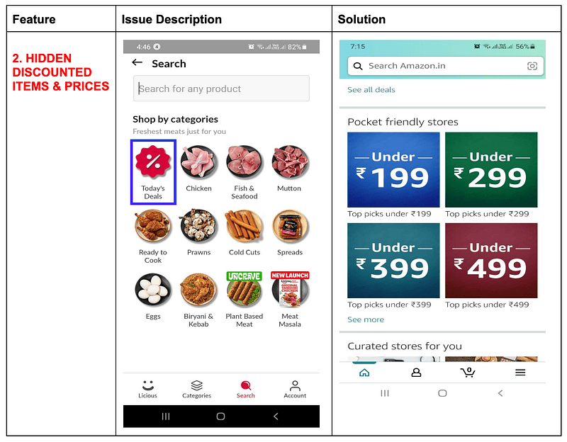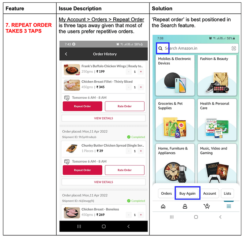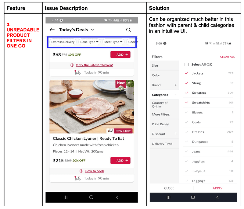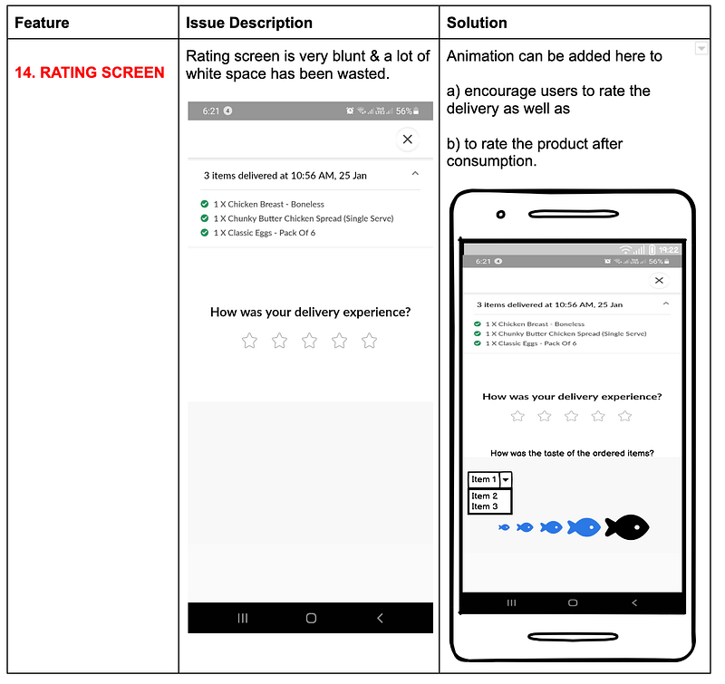 - The screens need minor tweaks & enhancements to grab users’ attention & push them towards “Add to cart” & convert them into repetitive users.