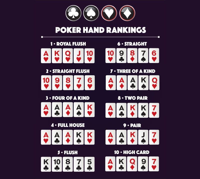 There are various forms of poker but they all use the same hand ranking. Remember the best poker hand is made with 2 of your cards + the 3 Community cards on the table.