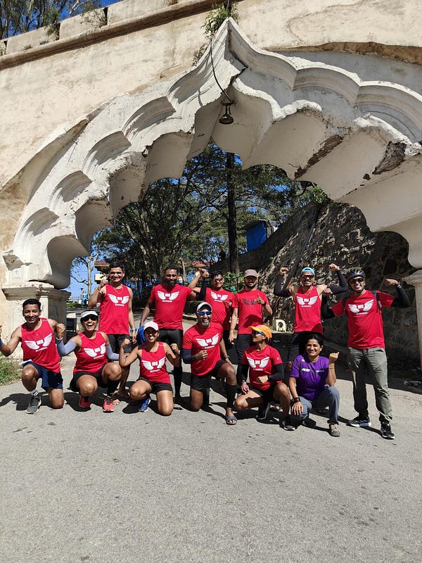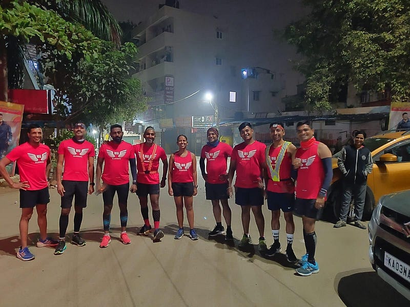 We did have issues & had to deviate from the plans. Eg: Some runners took a longer route by missing a turn, due to traffic we could not stop at the exact hydration points as planned & hence this led to dehydration. There was a bit of solace as we reached the outskirts. The sun started blazing, and running the highways felt like an infinite loop, the cyclists caught up & supported the runners who were either too fast or too slow or held back.